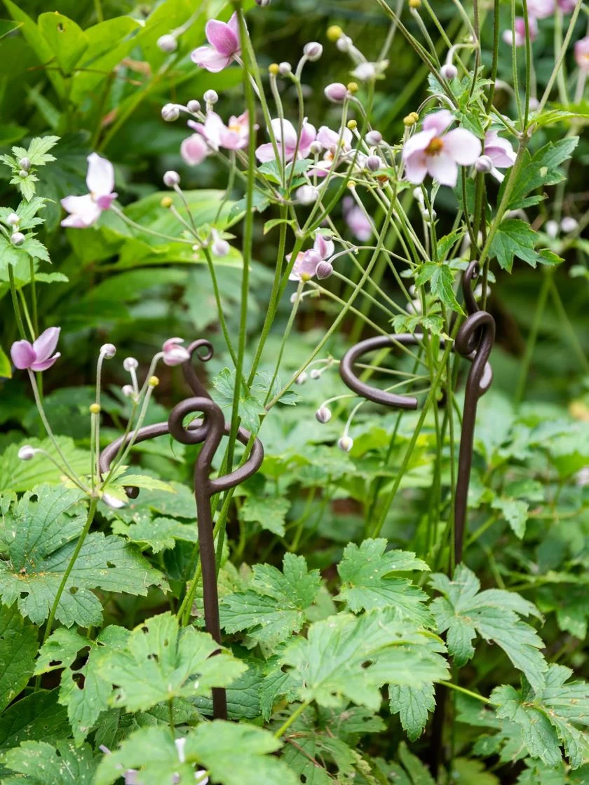 Sturdy yet decorative, these supports can support a single heavy bloom or several. An effective way to corral leaning stems and keep the garden looking its best, they have graceful lines and an heirloom finish that blends into the garden gracefully.